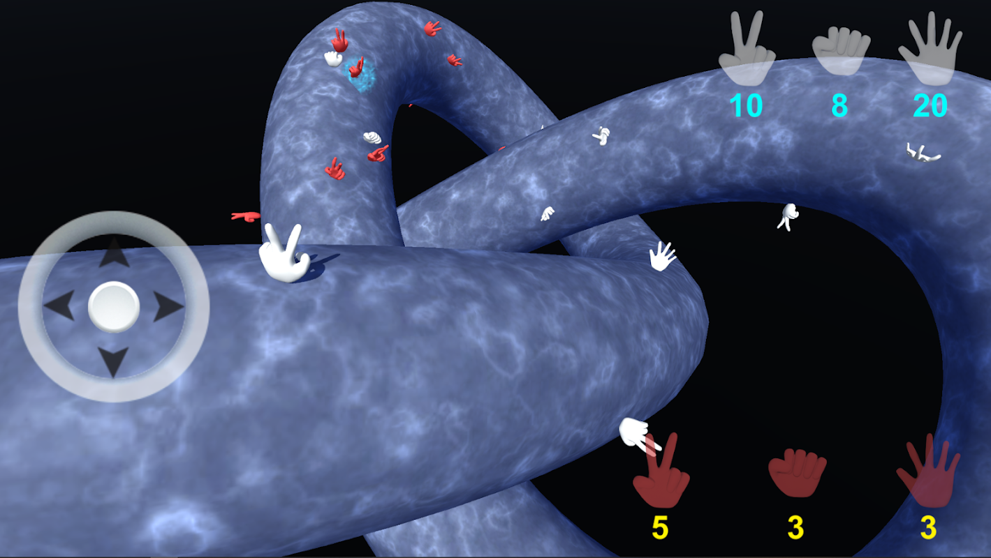 じゃんけんの原則を使用して、赤い手の一団を送り、白い手の軍隊を征服してください。