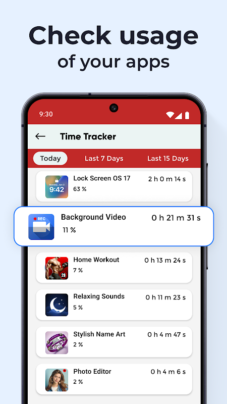 📊 アプリの使用履歴: アプリの使用履歴を簡単に表示および管理できます。今日、過去 7 日間、過去 15 日間など、さまざまな期間で最も使用されたアプリを並べ替えて確認します。 誰が私の携帯電話を追跡しているかを使用して、デバイスの使用状況を簡単に追跡します。