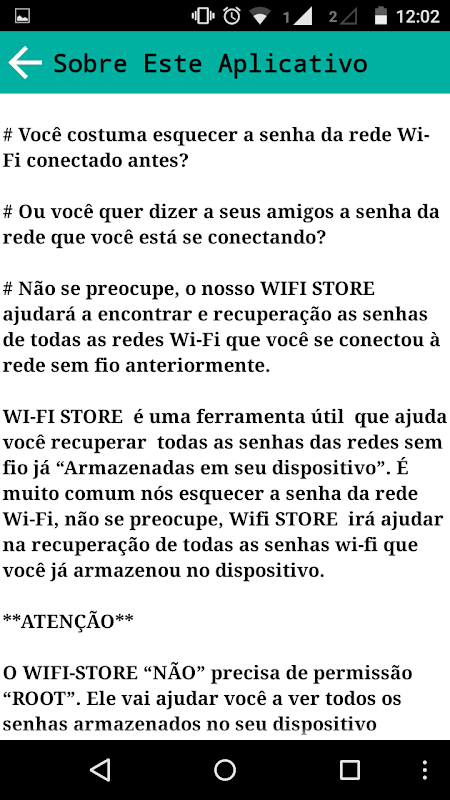 - Este aplicativo só é capaz de armazenar senhas de novas redes wi-fi conectadas através de sua INTERFACE.