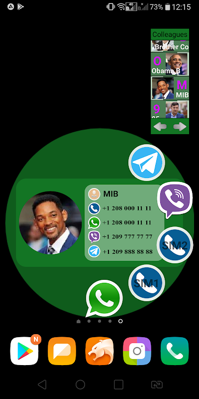 Using our application you can create the widget on the main screen of your phone with different groups not only for quick calls and SMS but also for opening contacts in popular messengers such as WhatsApp, Viber or Telegram (only in case these apps are installed on your phone).