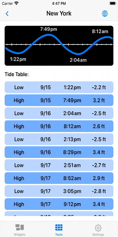 • Access to Tide and Weather hosted data is only available to Widgetsmith Premium subscribers.