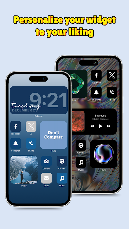 - 自分、家族、友達、ペットなどのお気に入りの写真を選択します。次に、サイズをカスタマイズして、ホーム画面上で大切にしたい特定の位置に配置します。