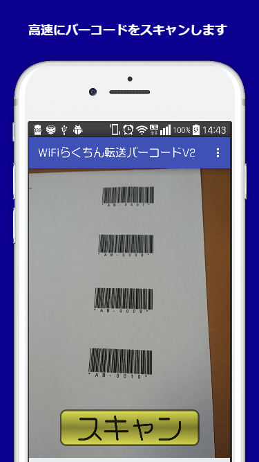読み取ったバーコードをリアルタイムでパソコンにWiFi転送してCSVファイルを作成します。