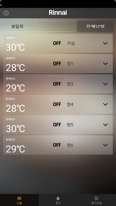 - 基本的な機能だけでなく、差別化されたアプリ専用の機能と通知サービスを提供することで、ユーザーがより簡単かつ便利にリンナイ各部屋の温度調節システムを使用することができます。