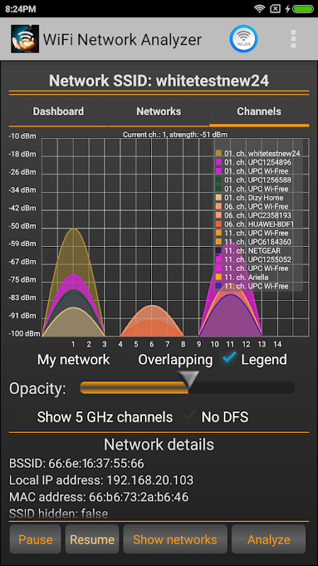 *アクセスポイントのベンダー、周波数、チャネル幅、セキュリティレベル、DHCP情報、BSSID(ルーターMACアドレス)などのネットワークとアクセスポイントに関する詳細情報。