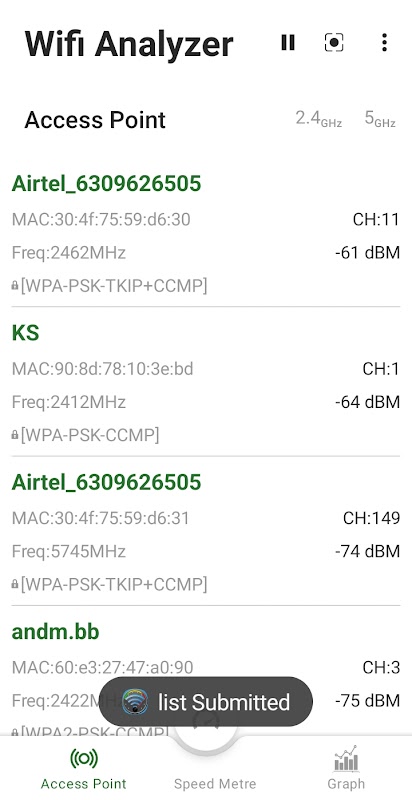 WiFi Analyzer は、2.4 GHz と 5 GHz の両方の Wi-Fi ネットワークの分析に役立つ無料、高速、安全なアプリです。ネットワーク アナライザーは、ルーターに最適なチャネルと場所を見つけて、ネットワークのパフォーマンスを向上させるのに役立ちます。 Wi-Fi スキャナーとして機能し、信号強度、MAC アドレス、周波数、チャネルとセキュリティの種類、Wi-Fi セキュリティ プロトコル WPA2-PSK CCMP などの詳細情報を含む近くの Wi-Fi ネットワークのリストを検索し、効率を最適化するための情報に基づいた決定を下します。