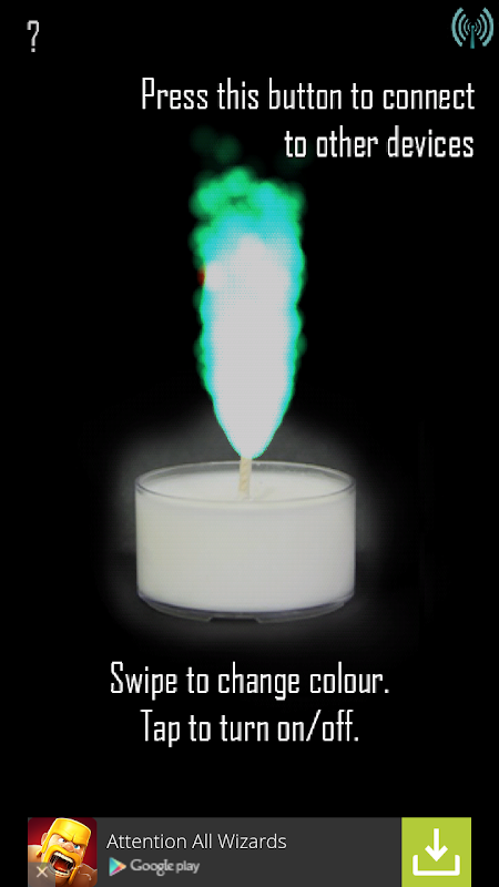This application simulates a candle with a multicolored flame. By moving your finger around the screen, the colour of the candle changes.