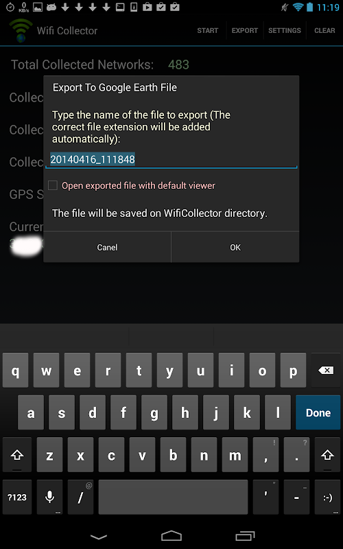 すべての無線ネットワークについては、以下の情報が収集されたネットワーク名(SSID)は、アクセスポイントのMACアドレス、アクセスポイント、信号レベル、チャネル周波数、チャネル番号、セキュリティ(WEP/WPA/WPA2)を製造元の会社、WPSをサポート(はい/いいえ)、ネットワークが検出され、ワイヤレスネットワーク(経度と緯度)の場所は、GPSから取得された日付/時刻。