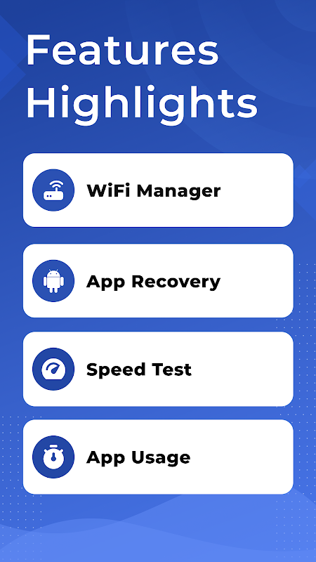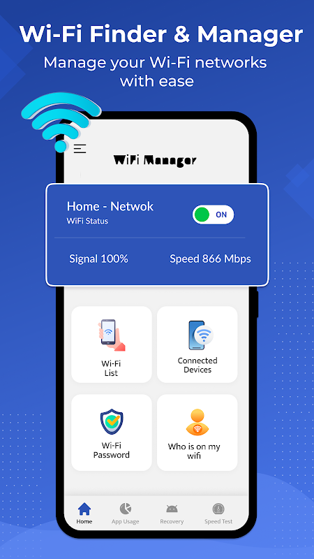 WiFi マネージャー: WiFi アプリのスキャンは、WiFi アナライザーとして機能するだけでなく、アプリの使用状況、削除されたアプリの回復、ネットワークと電話の詳細、インターネットまたは WiFi の速度テスト、Wifi を使用しているユーザーなどの機能も含みます。