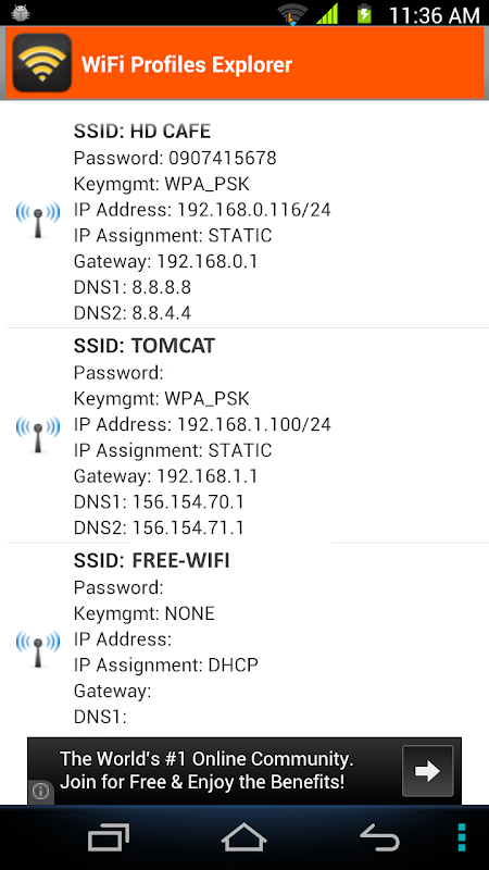 時々、あなたの友人はあなたの家のWi-Fi接続を使用したいが、あなたは自分のパスワードを忘れてしまった場合は、問題を持つことができます。このアプリは、このような状況であなたを助けるでしょう。また、あなたのデバイス上のすべてのWi-Fiプロファイルのパスワードを表示することができます。