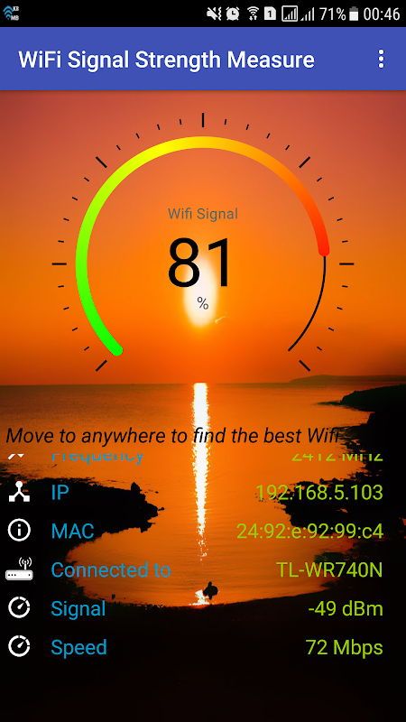 The app is constantly updating the signal strength so you can walk around your house, work, or anywhere your connected to WiFi to find the best connection.
