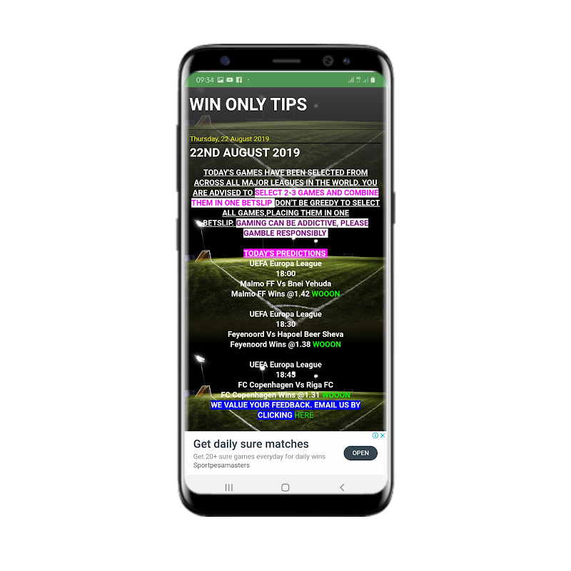 WIN ONLY TIPS, is an app with high consistent winning rate. We provide various football tips such as, over/under picks, HT/FT picks, Asian/European handicaps etc.