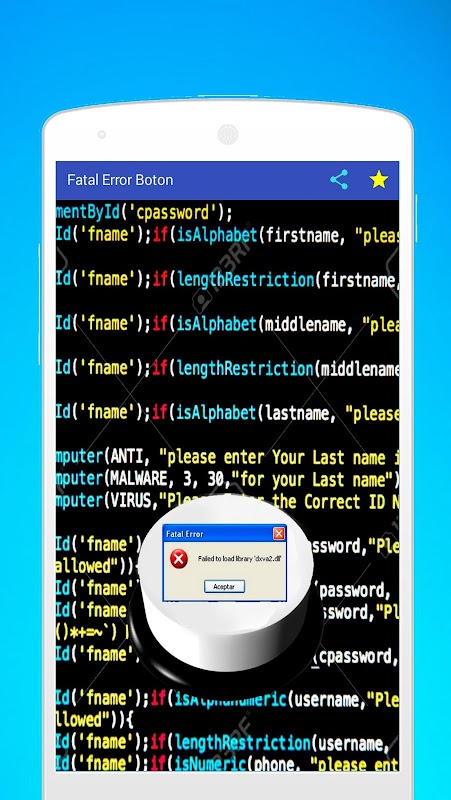 Win XP Fatal Error Botón, es una aplicación diseñada para parecer un botón el cual al ser apretado, te da acceso ilimitado al sonido que hacían las icónicas primeras computadoras 💻cuando ocurrió un error en el sistema.