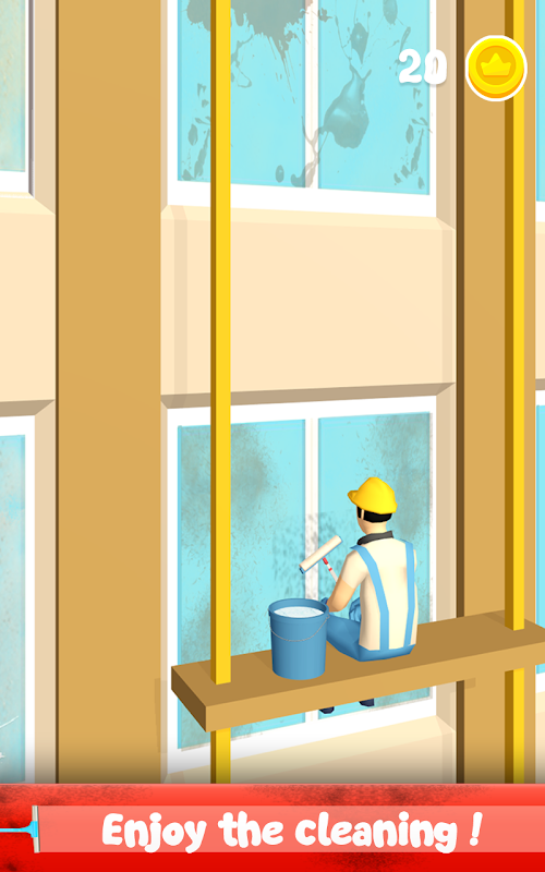 The player swipes the window and cleans it. As soon as the player releases his finger, the brush/sponge falls down and is destroyed. A level is considered completed if the entire window is cleared. If the brush fell, then continue the level for viewing ads or start the level again. For each cleared window, the player receives coins.