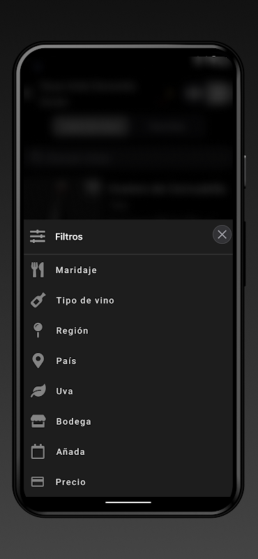 El cliente del restaurante, utilizando su propio dispositivo móvil, puede acceder al recomendador de vinos y realizar la selección, a través de los diferentes filtros, del vino que desee para acompañar a los platos.
