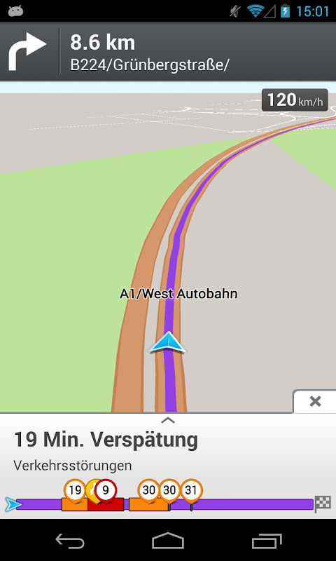 Basis 3D Navigation mit Sprachanweisungen, Radar-Hinweisen und Echtzeit-Verkehrsinformation.