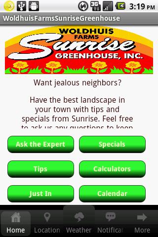 With this new app, you will be able to stay in touch with what is happening at Sunrise Greenhouse! You can view our sales, use coupons, read tips for gardening, calculate how much mulch you need for your garden beds, and ask us any and all questions right from this one app! It's a great app to make your landscape the envy of all your neighbors!