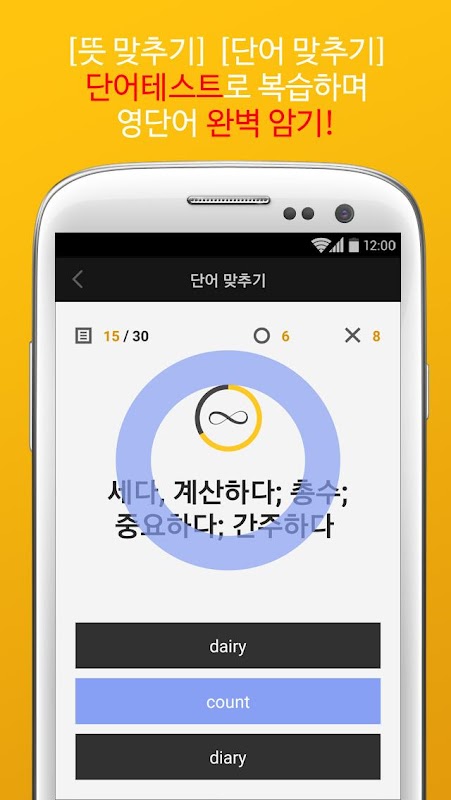 モバイルアプリに最適化された記憶の質しかない無限ループシステムで、最適の英単語暗記学習方法を提供しています。