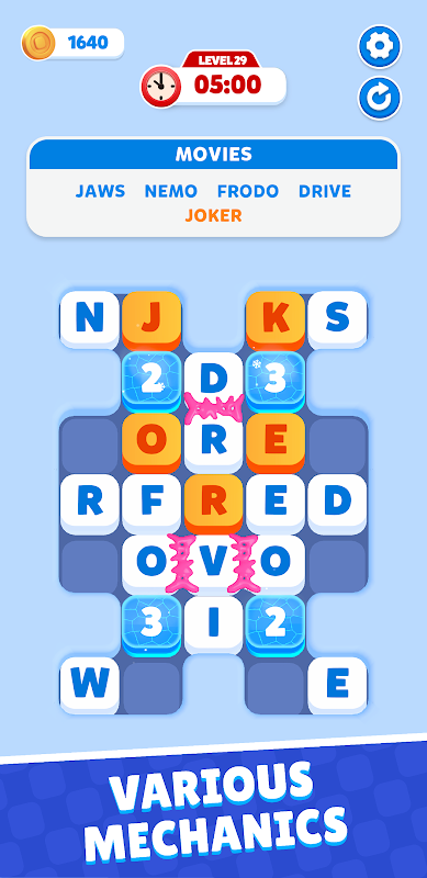 ボード上で文字ブロックをドラッグ&スライドさせて、指定された単語を作りましょう。限られたスペースで、動きが重要になります。レベルごとに、シンプルな単語作りが満足感の高い脳トレになります。すべての単語を完成させてボードをクリアし、完璧なフィニッシュを楽しみましょう。