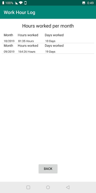 Press "Start work" when you start your working day and "End work" when you finish. The app will record your date & time and show you a list of your entries.