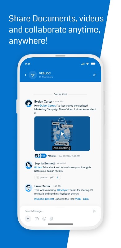 1 対 1 またはチーム全体とリアルタイムでチャットできます。