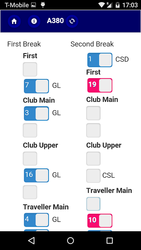 Working positions for all BA worldwide aircraft and variants, sorted by breaks and responsibilities. Use in pre-flight briefing to help you choose your working position. Click each position as it is chosen. It disappears leaving remaining positions available to choose from. No more writing positions down and crossing off and working out which break, or if duty free or galley. Easy!