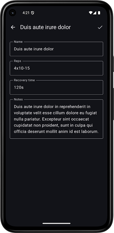 カスタム ワークアウト ルーチンの保存 (アプリによって生成されない): 名前、セット、回数、重量を指定してエクササイズを追加します。