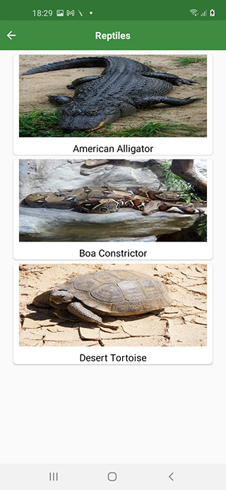 ここでは、お気に入りの動物の写真を見て、写真で動物の種類について学ぶことができます。
