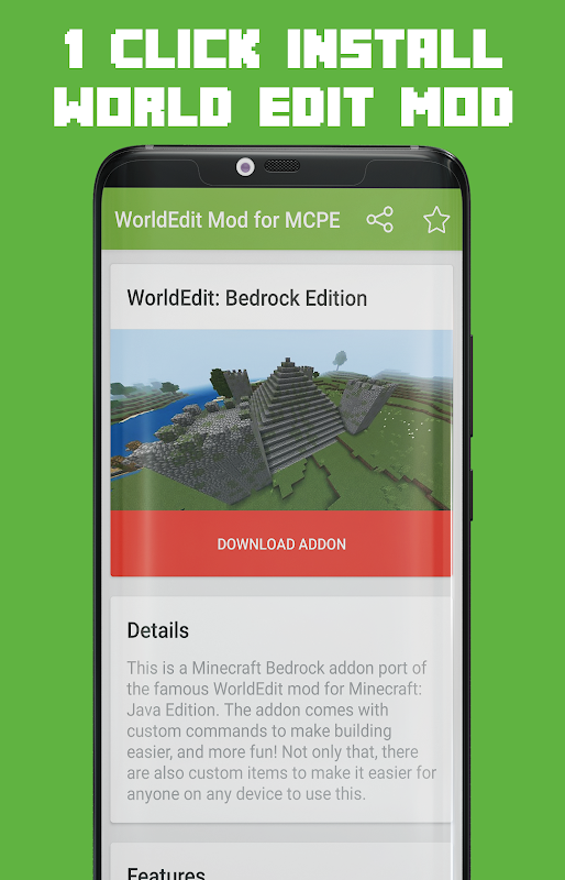WorldEdit Mod for Minecraft PEは、AndroidデバイスにWorldEdit:BedrockEditionアドオンをMinecraftPocketEditionゲームに簡単にダウンロードしてインストールできるようにするアプリケーションです。 Minecraft Mod、アドオン、マップ、スキン、テクスチャパックを非常に簡単にインストールできるワンクリックインストーラーのおかげです。