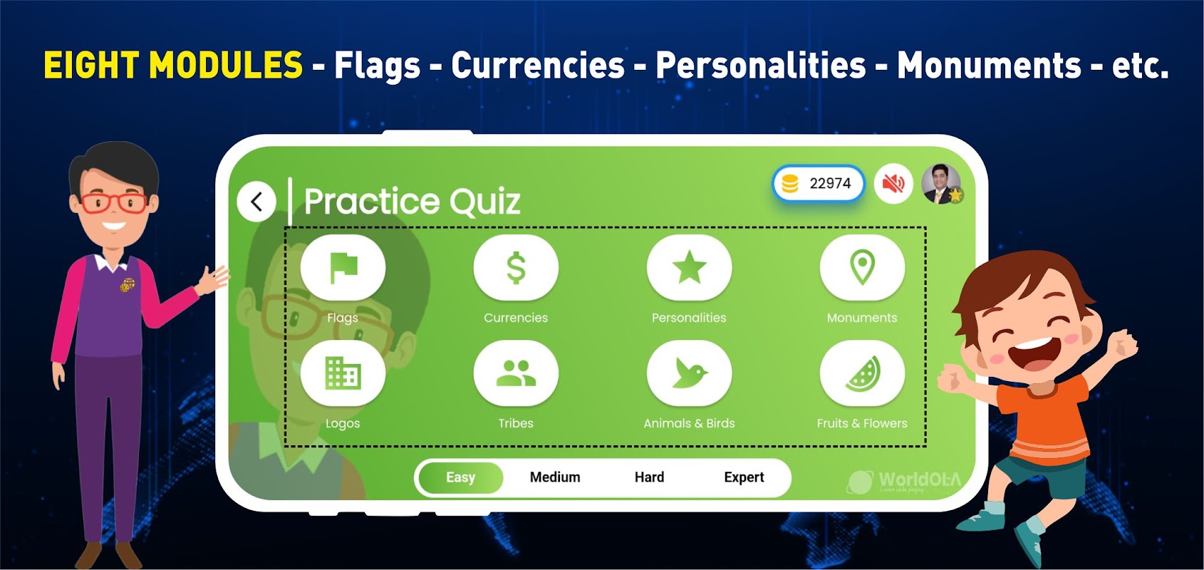 WorldOLAは単なるゲームではありません。国旗🏁、通貨💴、人物🗿、モニュメント🏡など、魅力的な世界を紹介する教育体験です。昼夜を問わずいつでもプレイできるWorldolaクイズとWorldolaチケットゲームに挑戦しましょう。