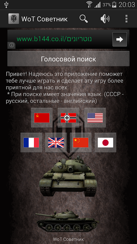 Подходит тем, кого интересуют танки с 8 по 10 уровни, а так-же 20 танков 4-7 уровня. Вы можете воспользоваться текстовым или голосовым поиском, чтобы получить описание наиболее пробиваемых частей выбранного вами танка, в том числе озвученный вариант (голосовое описание можно отключить)