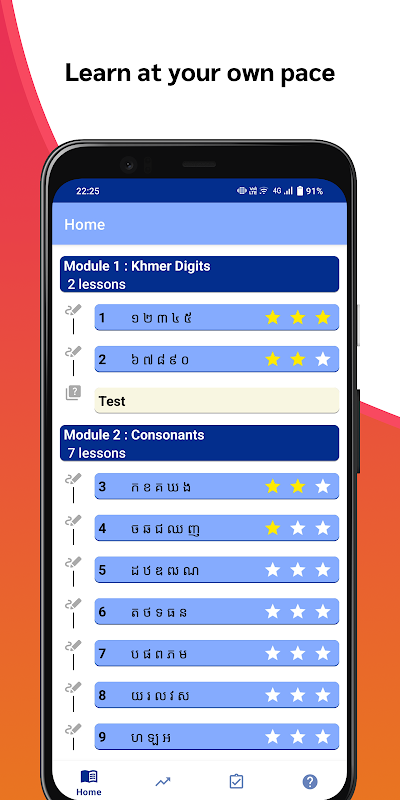 自分でテストする前に、クメール語の書き方を学び、練習してください。