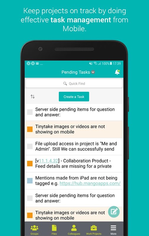 タスク管理:いつでもどこでもモバイルデバイスから個人やチームのタスクにアクセスできます。パーソナルタスクの追加と表示に加えて、タスクがプロジェクトに追加されたときに自動的に更新を受け取ることができます。これにより、管理や管理が容易になります。