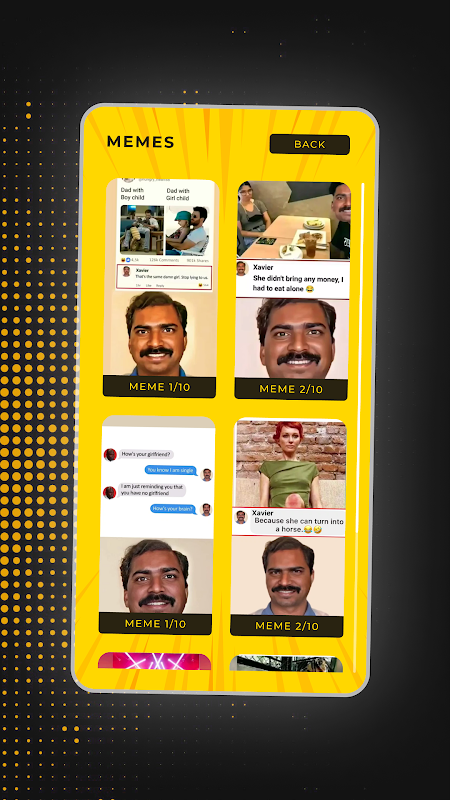 Xavier Meme アプリを使用すると、騒々しいミームのコレクションをナビゲートすることがこれまでになく簡単になります。ユーザーフレンドリーなインターフェイスにより、シームレスで手間のかからないブラウジングが保証され、あらゆるミームを簡単に発見して楽しむことができます。あなたが熱狂的なザビエル ファンであっても、ただ笑いを求めているだけであっても、このアプリは無限のエンターテイメントを保証します。