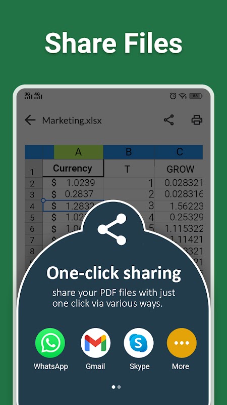 Excel Viewer には、名前変更、削除、共有、スプレッドシートのスクロールなど、必要なオプションがすべて付属しています。この XLSX ビューアは、XLSX ドキュメント ファイルを読み取るための効率的なオフィスおよび生産性ツールです。今すぐ XLSX Reader - Excel Viewer をダウンロードして、共同作業を始めてください。私たちは、XLSX Reader アプリを最適化し、ユーザー エクスペリエンスを向上させるために引き続き努力していきます。お気軽に[email protected]までご連絡ください。