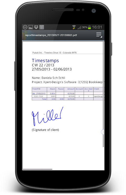 * クライアントにデバイスの画面上で PDF レポートに直接署名してもらいます。 (追加料金)