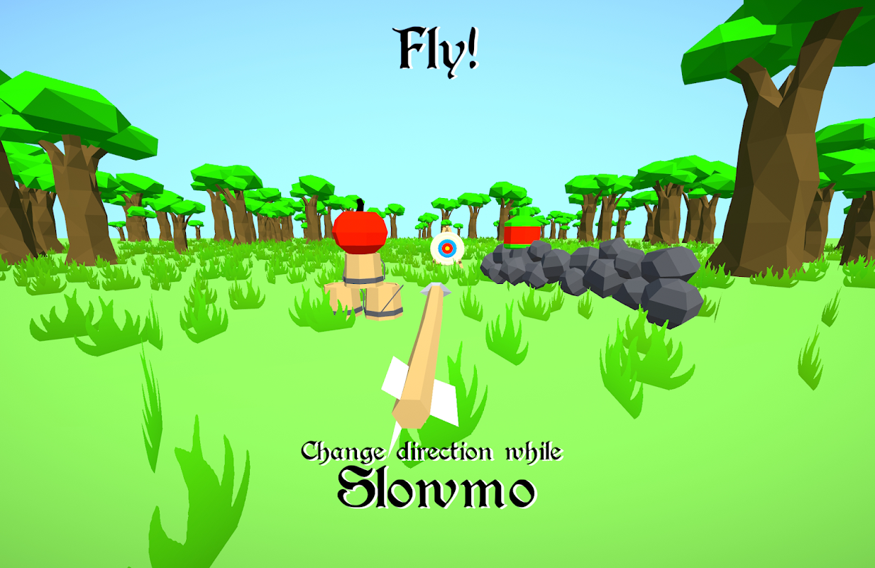 Fly through the air in the form of an arrow in this short puzzle-action game. Shoot through apples and bottles and try to hit them all!