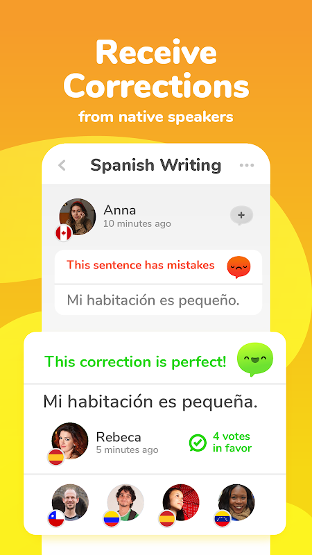 あなたは自分で言語を学んでいるかもしれませんが、それは孤独な経験である必要はありません。あなたのような言語学習者のグローバルコミュニティと対話し、常にあなたの学習を中心に置くように特別に設計された安全な環境で、訂正やフィードバックを受け取り、提供します。