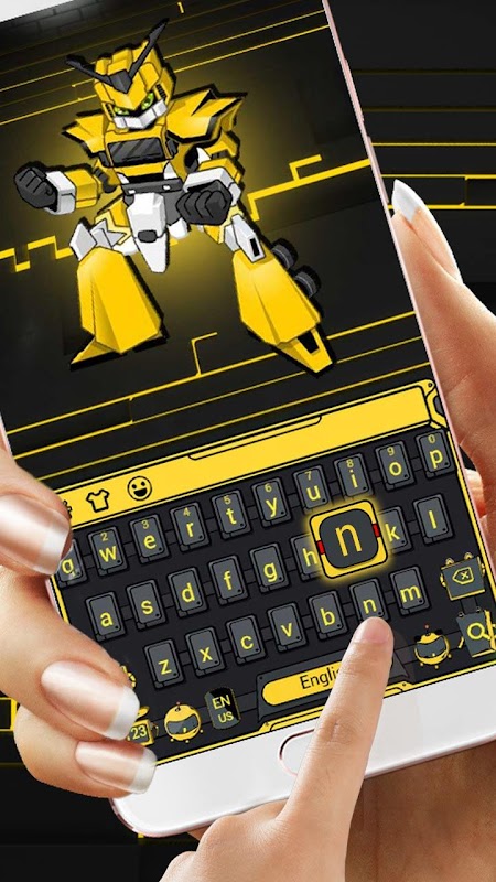 yellow robot gives you bumble auto bot typing experience, featuring unique particle effect and finger gestures. This yellow robot keyboard theme consists of not only automobile toy HD wallpaper backgrounds, but also specially designed keys.