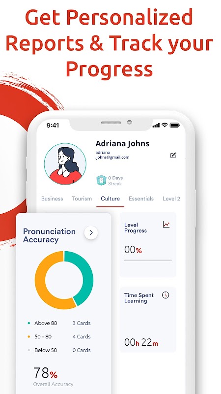 YiChi は、インテリジェントなレポート システムを使用して、すべてのステップで進捗状況を追跡します。苦手なところに着目し、初心者からプロまで発音を磨くことができます。