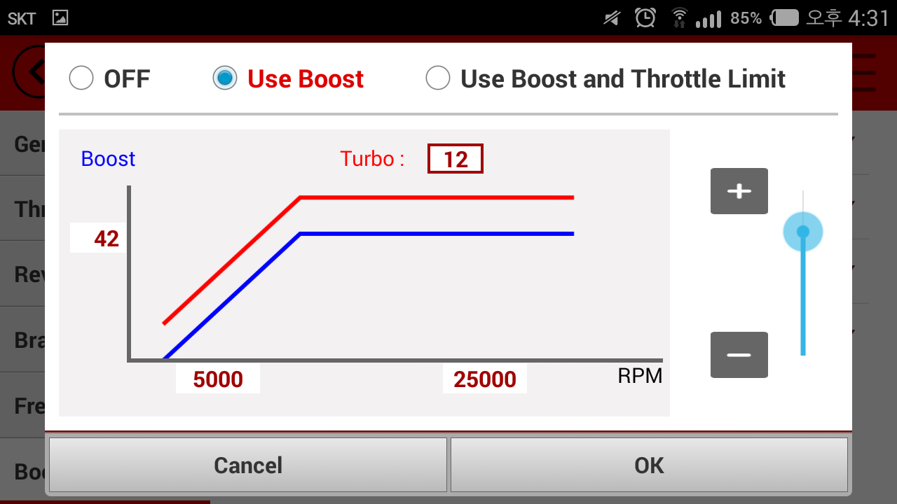 Live画面にて走行中のモーター回転数、電流、バッテリー電圧、ESC温度、送信機アクセル開度のチェック