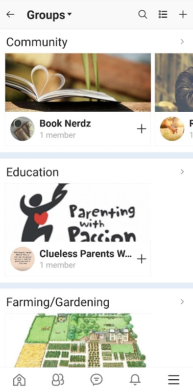 1.グループ、ページ、投票、写真、音楽、ビデオがあります。