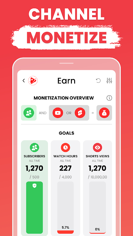 収益化目標に向けた毎日の進捗状況を追跡します。この機能は収益化への明確なロードマップを提供し、動画から収益を得始めるために何をする必要があるかを理解するのに役立ちます。