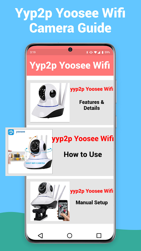 このアプリは、yyp2p Yoosee Wifi カメラのガイド機能、デバイスのセットアップと共有方法、トラブルシューティング手順、トレース機能の使用方法を説明するガイドです。このアプリには、ユーザー ガイドと yyp2p カメラの機能の理解が含まれています。実践的でわかりやすいパッケージ化