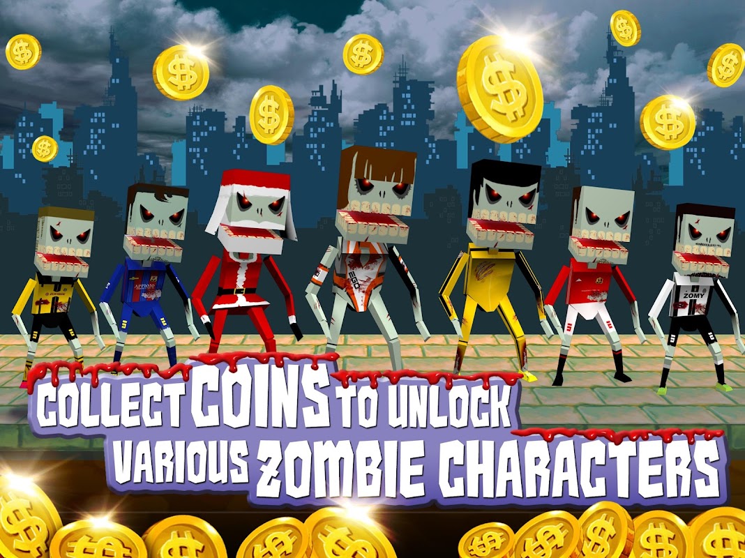 - Collect coins to unlock various zombie characters