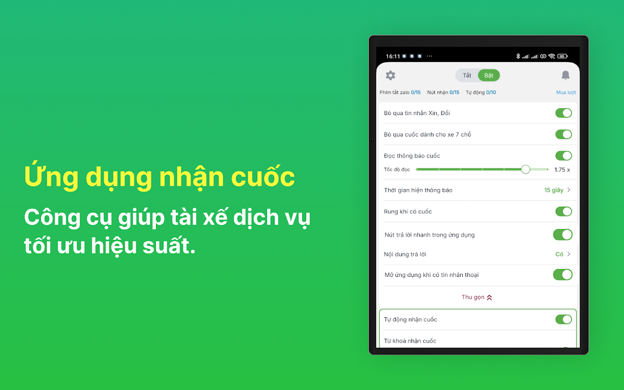 ZAuto は、サービス ドライバーが乗車のパフォーマンスを最適化するのに役立つアプリケーションです。 ZAuto は、通知を読んだり、音声メッセージがあるときにアプリを自動的に開いたり、キーワードによって迅速かつ自動的に旅行を受け入れたりする機能を備えており、ドライバーがチャンスを逃さないように支援します。