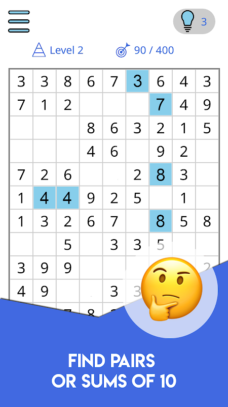 • 各数字をタップして、マッチしたペアを消してポイントを獲得します。