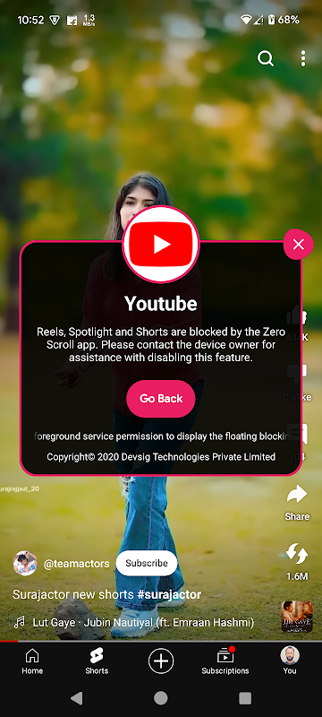 Zero Scroll アプリは、コンテンツの消費を効果的に管理できるように、リール、スポットライト、ショートへのアクセスをブロックしました。