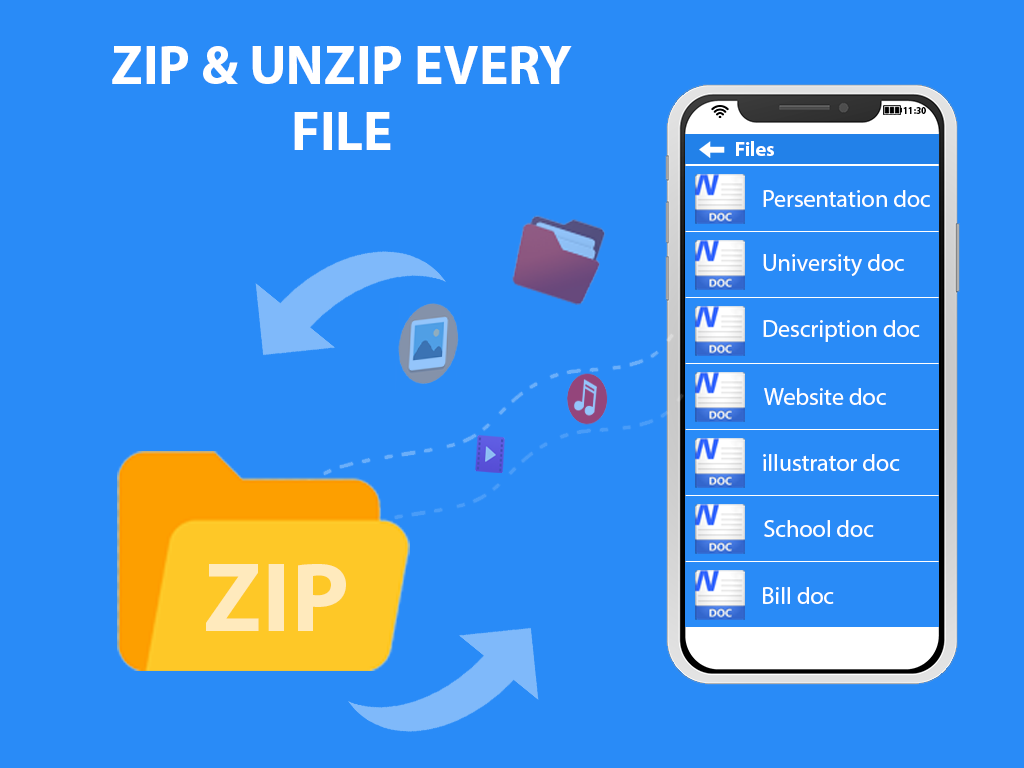 Android用のZipエクストラクタは、mp4ファイルの縮小と圧縮をサポートするだけでなく、このzipファイルメーカーを使用することもできます。ビデオサイズアプリを圧縮してオーディオファイルを圧縮します。このファイルコンプレッサー:zipリーダーを使用すると、オーディオファイルも圧縮できます。高品質のオーディオファイルはサイズが大きいため、オーディオファイルを圧縮して共有を開始し、ソーシャルメディアアプリを介してzipオープナーandroid:zip unzipappを介して共有します。 zipデコンプレッサー– zipファイルオープナーがないと、誰もあなたのzipファイルを開くことができないので、このファイルコンプレッサーを使用することもできます:安全な共有のためのzip抽出アプリ。すべてのオーディオファイルは、このzipファイルリーダー(zip抽出アプリ)に個別に読み込まれます。このzipオープナーandroid:zip抽出アプリを使用してファイルを解凍、圧縮することもできます。