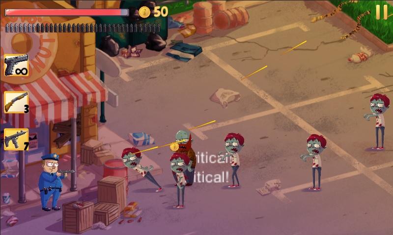 ゾンビアタック! ゾンビが街を埋め尽くすこの世の終わりに、あなたは警察官としてドーナツショップでゾンビに立ち向かいます。ドーナツは唯一の食糧。ドーナツをゾンビどもに渡してはならない!